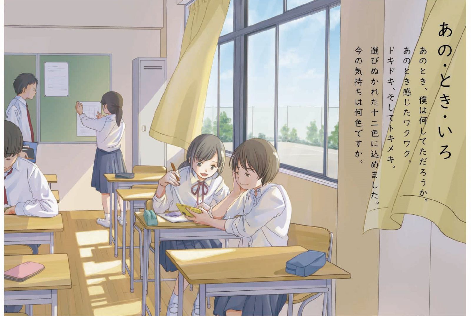 エモ色文具・あのときいろあのときのシーンを色名に込め、色と情景をイメージさせるイラストで表現しました。