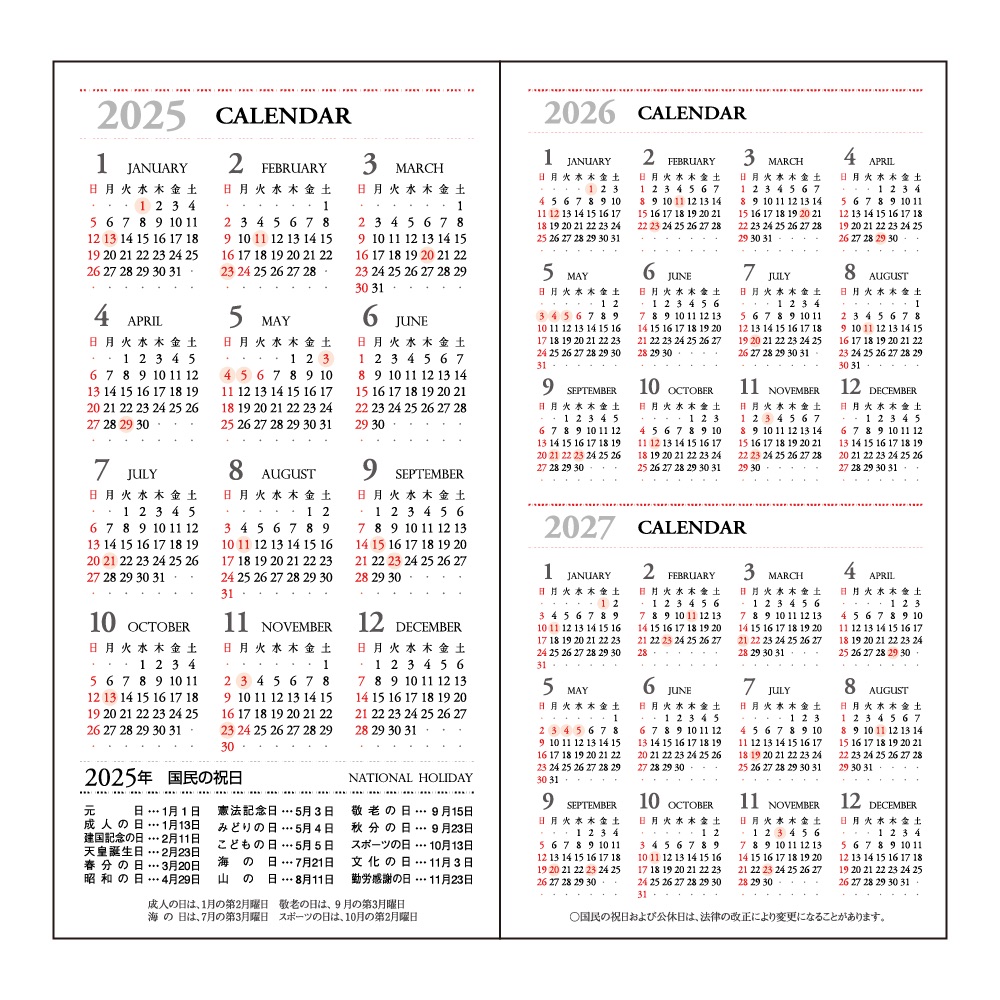 | 内容 | カレンダー、年間スケジュール、月間スケジュール(翌年4月まで)、週間スケジュール、ノート、別冊アドレス、おぼえ |