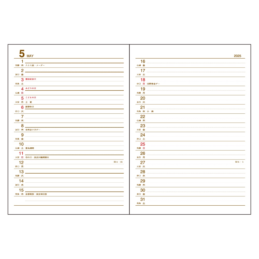 | 内容 | カレンダー、年間スケジュール、月間スケジュール(翌年4月まで)、ノート245頁、方眼ノート12頁、アドレス、おぼえ |