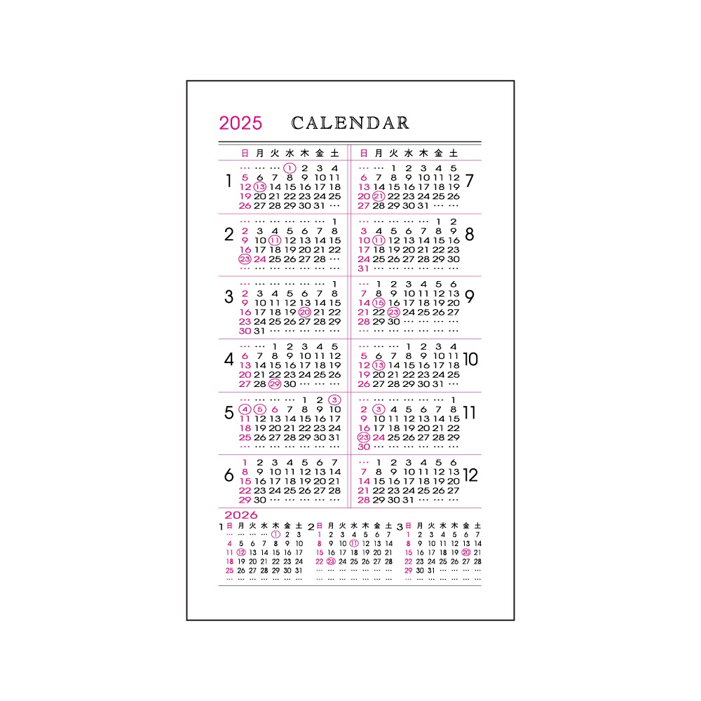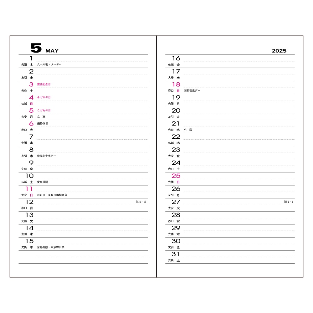 | 内容 | カレンダー、年間スケジュール、月間スケジュール(翌年4月まで)、ノート、アドレス、おぼえ |