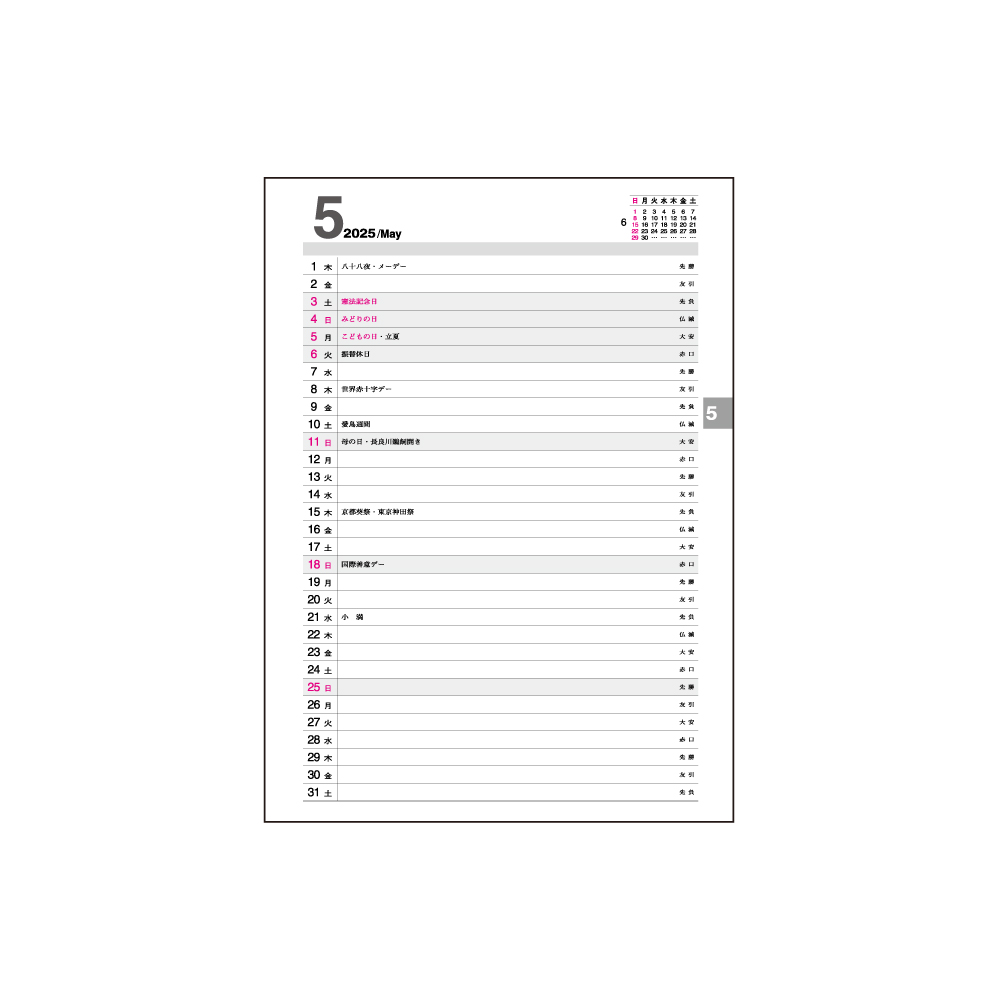 | 内容 | カレンダー、年間スケジュール、月間スケジュール(翌年4月まで)、週間スケジュール、ノート、アドレス、おぼえ |