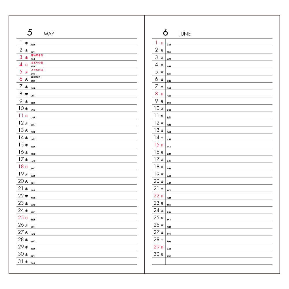 | 内容 | カレンダー、年間スケジュール、月間スケジュール(翌年4月まで)、週間スケジュール、ノート、アドレス、おぼえ |