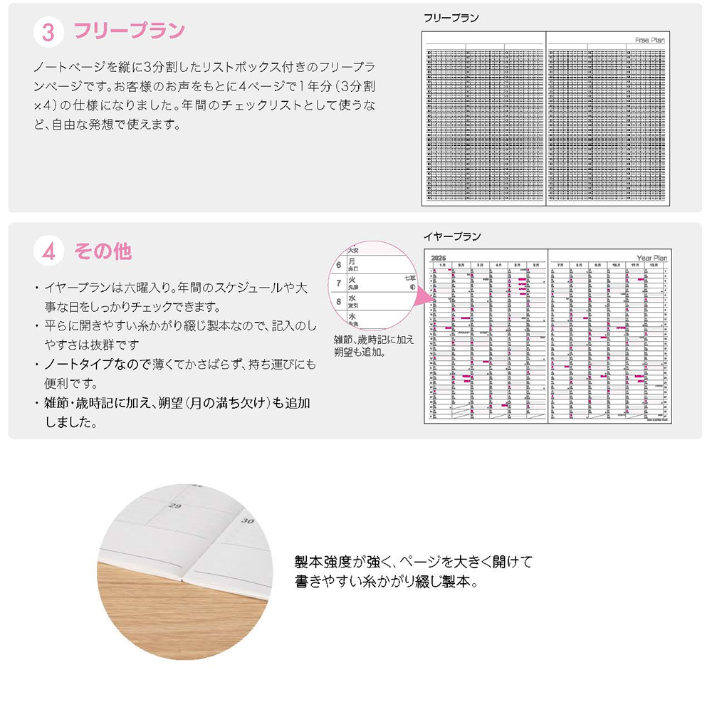 週のはじまりを日曜から意識することで快適な生活習慣を実現!カレンダーと同じ見え方なのでデスク用や2冊目の手帳としても最適です。