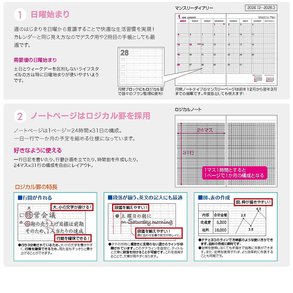 週のはじまりを日曜から意識することで快適な生活習慣を実現!カレンダーと同じ見え方なのでデスク用や2冊目の手帳としても最適です。