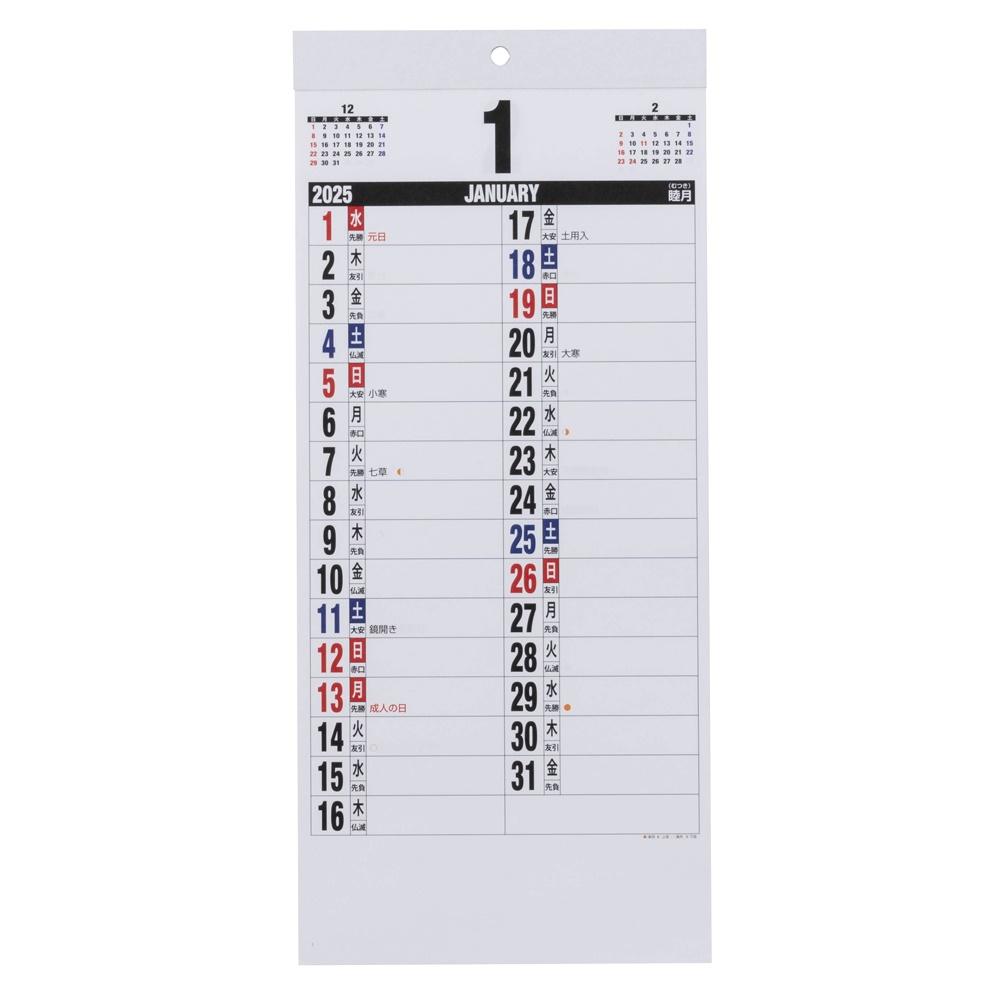 壁掛けカレンダー2025 文字月表L(リスト)タイプ/W168