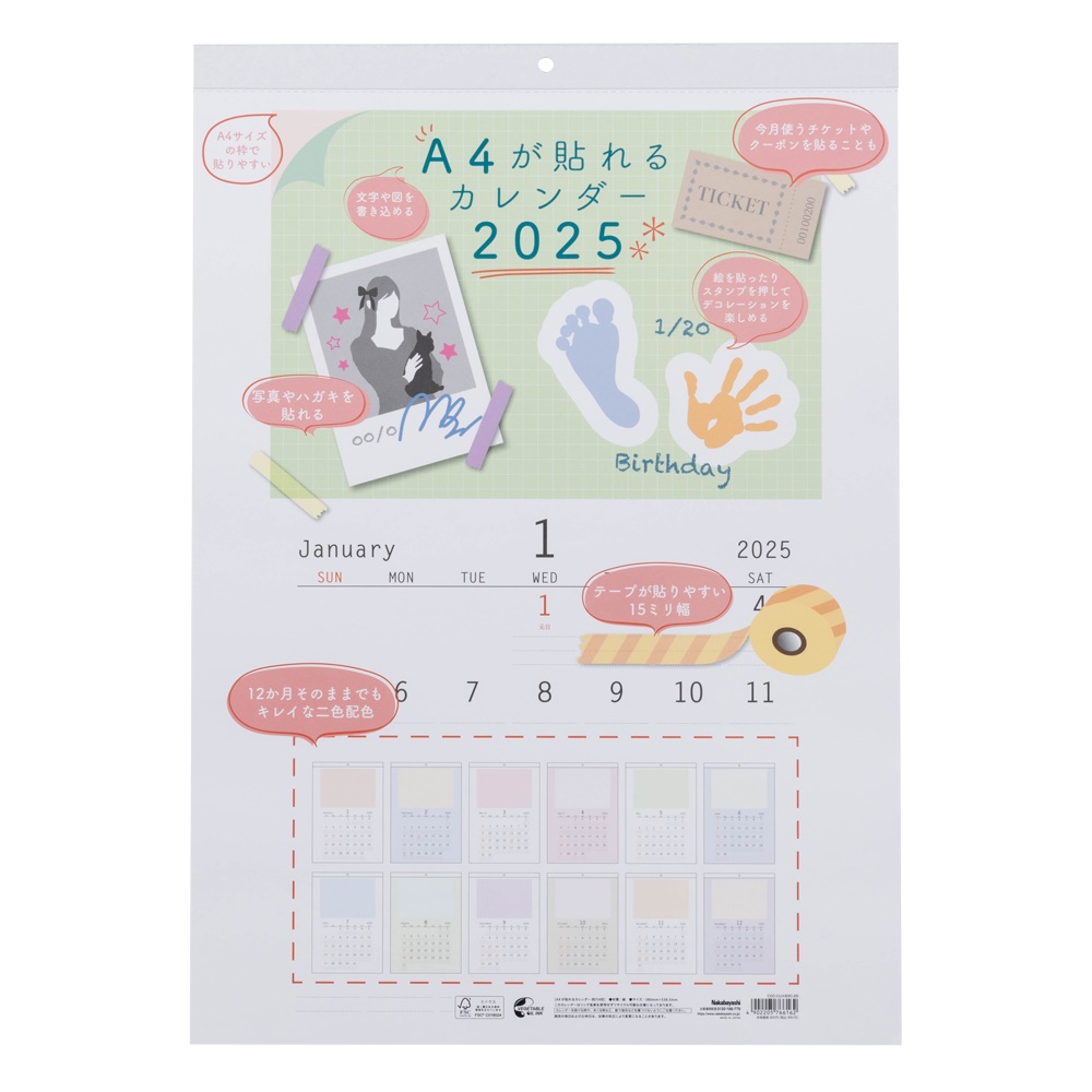 壁掛けカレンダー2025 A4が貼れるカレンダー/四六4切