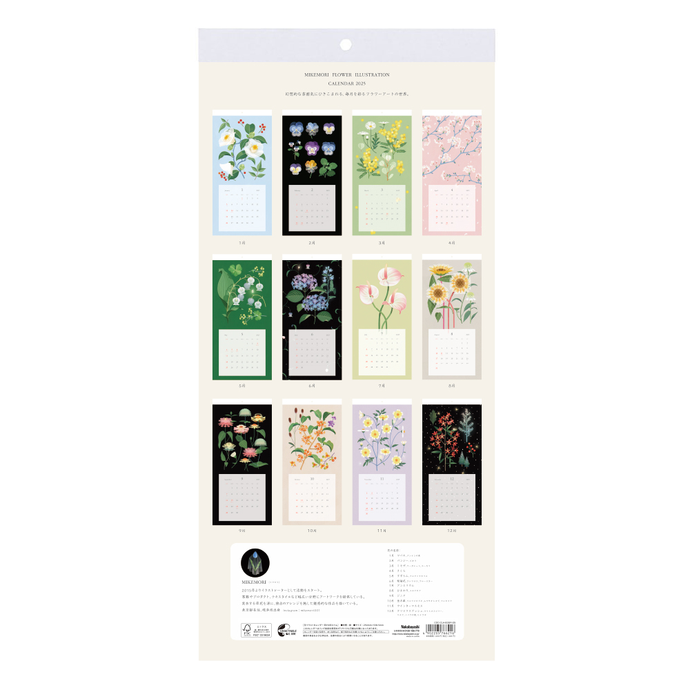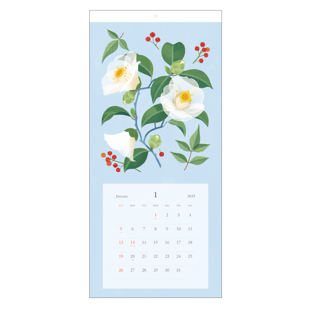 壁掛けカレンダー2025 花イラスト/A4スリム