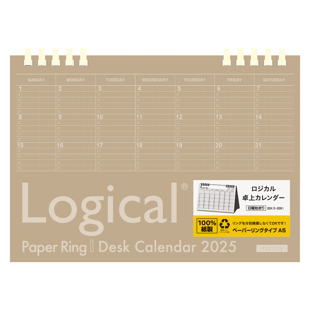 ロジカル卓上カレンダー2025 ペーパーリングタイプ/A5/クラフト