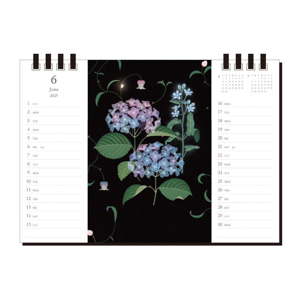 卓上カレンダー2025 花イラスト/A5/ブラック