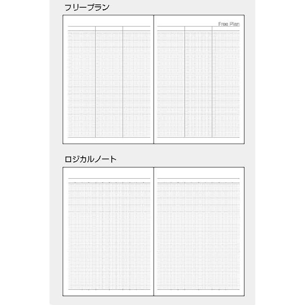 インデックス付きB6サイズのロジカルダイアリー。月間ブロックと見開き2週間を1冊にまとめています。
