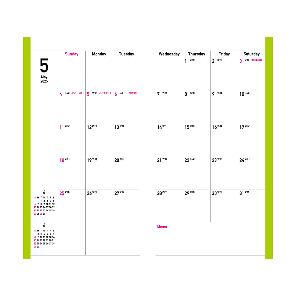 カレンダーとリンクさせるのに便利な、日曜始まりタイプです。