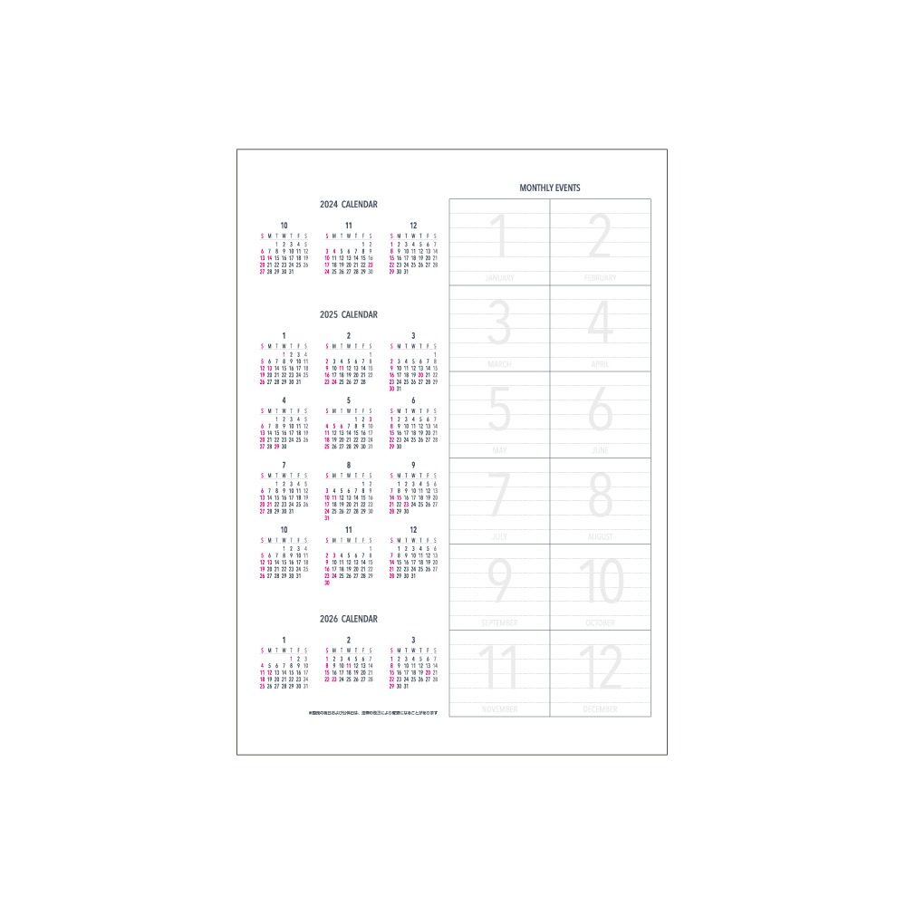 カレンダーとリンクさせるのに便利な日曜始まりタイプ。