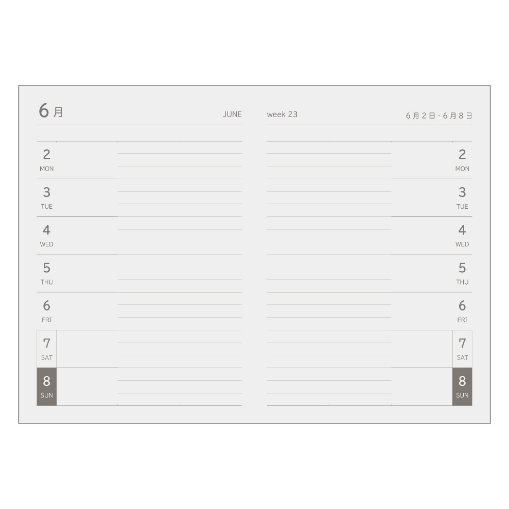 ウィークリーページは右からも左からも書ける両側レイアウトを採用しています。