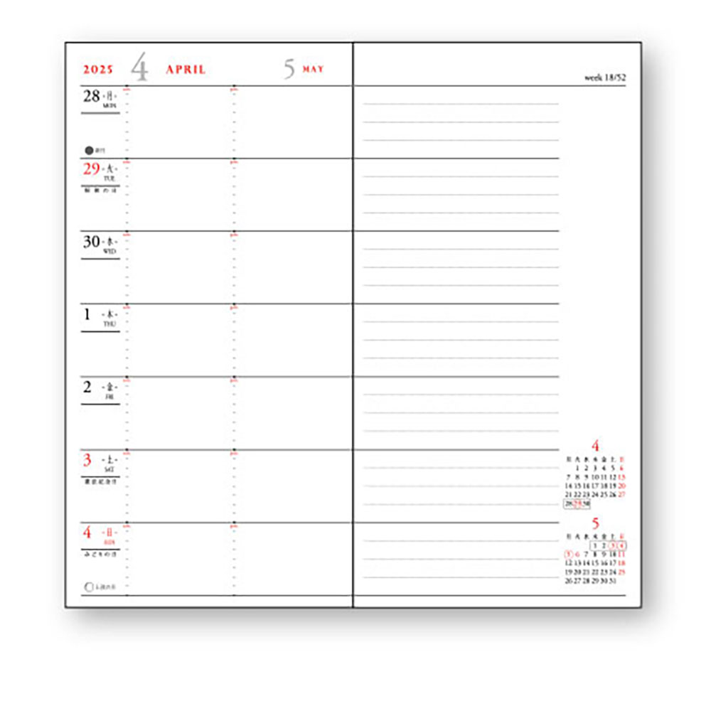 コンパクトなボディに機能的なコンテンツがぎっしり詰まっています。ナカバヤシ独自の手帳技術を活かし、一年間のハードな使用にも耐えるように強靭に仕上げました。