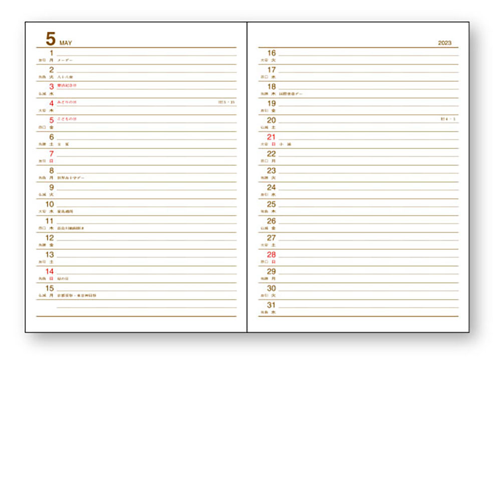コンパクトなボディに機能的なコンテンツがぎっしり詰まっています。ナカバヤシ独自の手帳技術を活かし、一年間のハードな使用にも耐えるように強靭に仕上げました。