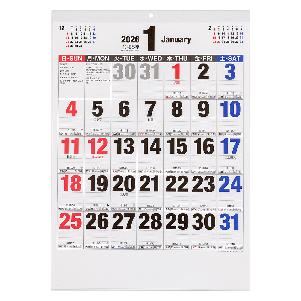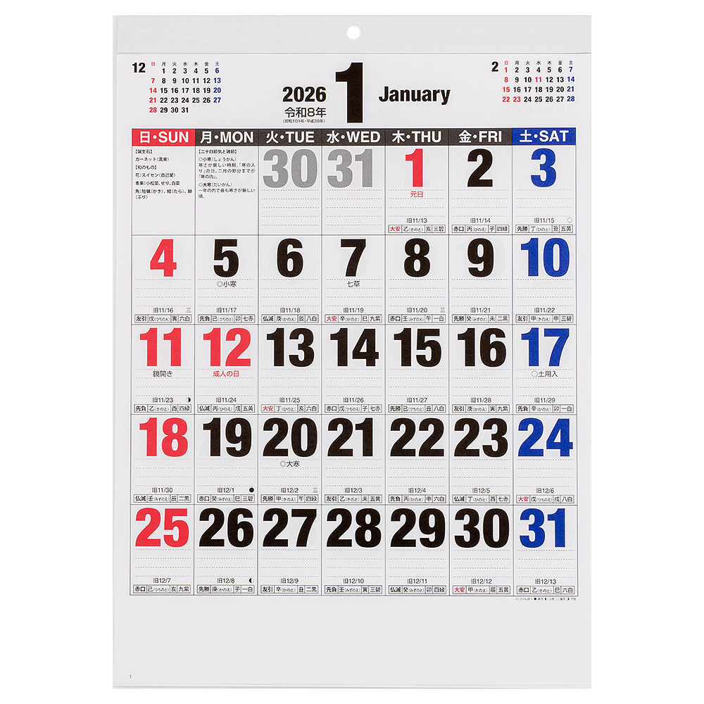 壁掛けカレンダー2026 文字月表B(ボールド)タイプ/四六4切