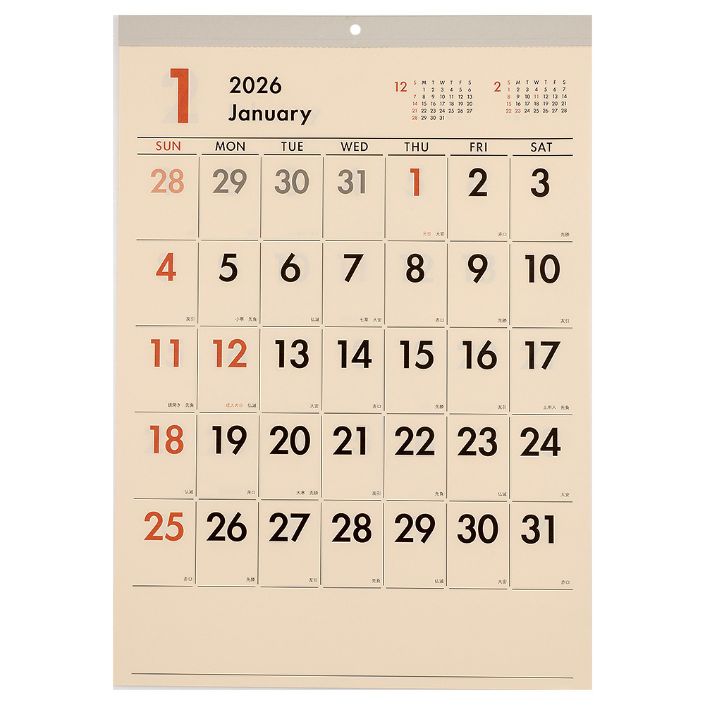 壁掛けカレンダー 文字月表 CY(クリーム地)/A3