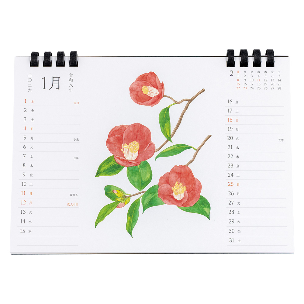 卓上カレンダー2026 花イラスト/A5/ブラック