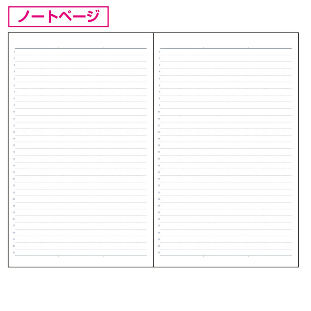 仕事でもプライベートでも使える人気のA5スリムサイズのノートダイアリー。カレンダーとリンクさせるのに便利な、日曜始まりタイプです。