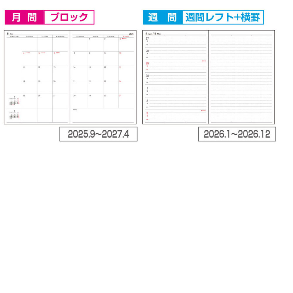 | 本文 | 手帳用紙(白)・208ページ(しおり2本付) |