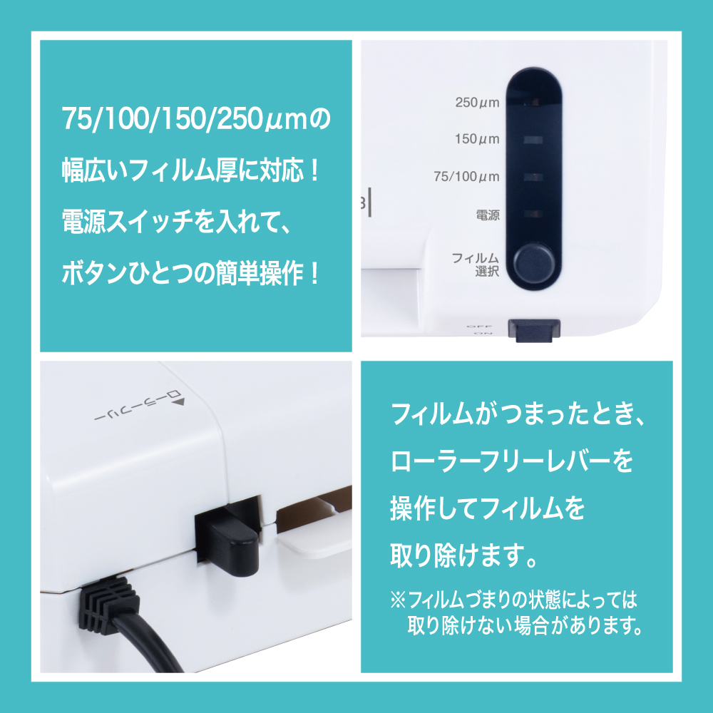 | 対応フィルム厚 | 75/100/150μm(薄紙・厚紙) 250μm(薄紙) |