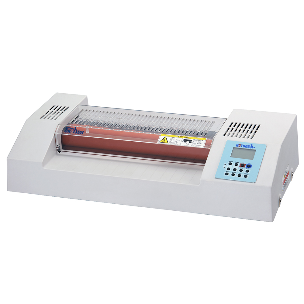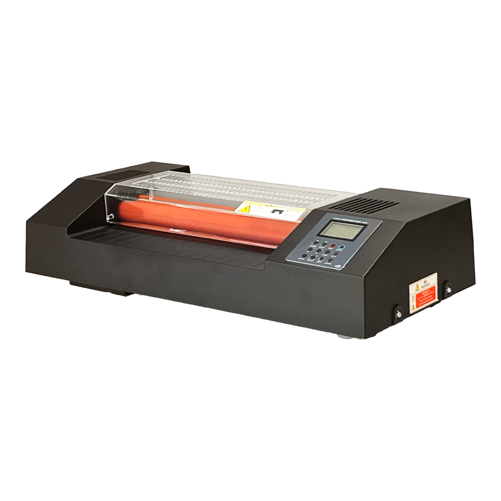 コンピュータ制御でハイレベルなラミネートが可能。さまざまなラミネートフィルムにも対応でき消費電力を抑えます。透明カバーで加工状況も一目で認識でき