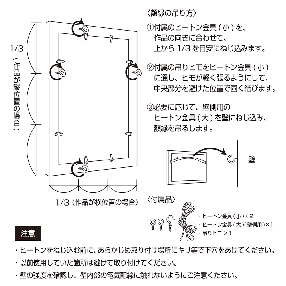 | 仕様 | 吊りヒモセット付(ヒートン金具 大・1本、小・2本、ヒモ1本)、化粧函入 |