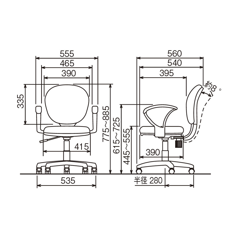 | 材質 | 座(表)、背(表)/合成皮革(PVC抗菌) 座(裏)、背(裏)/ポリプロピレン フレームカバー・アームレスト/ポリプロピレン ベース・キャスター/ナイロン |