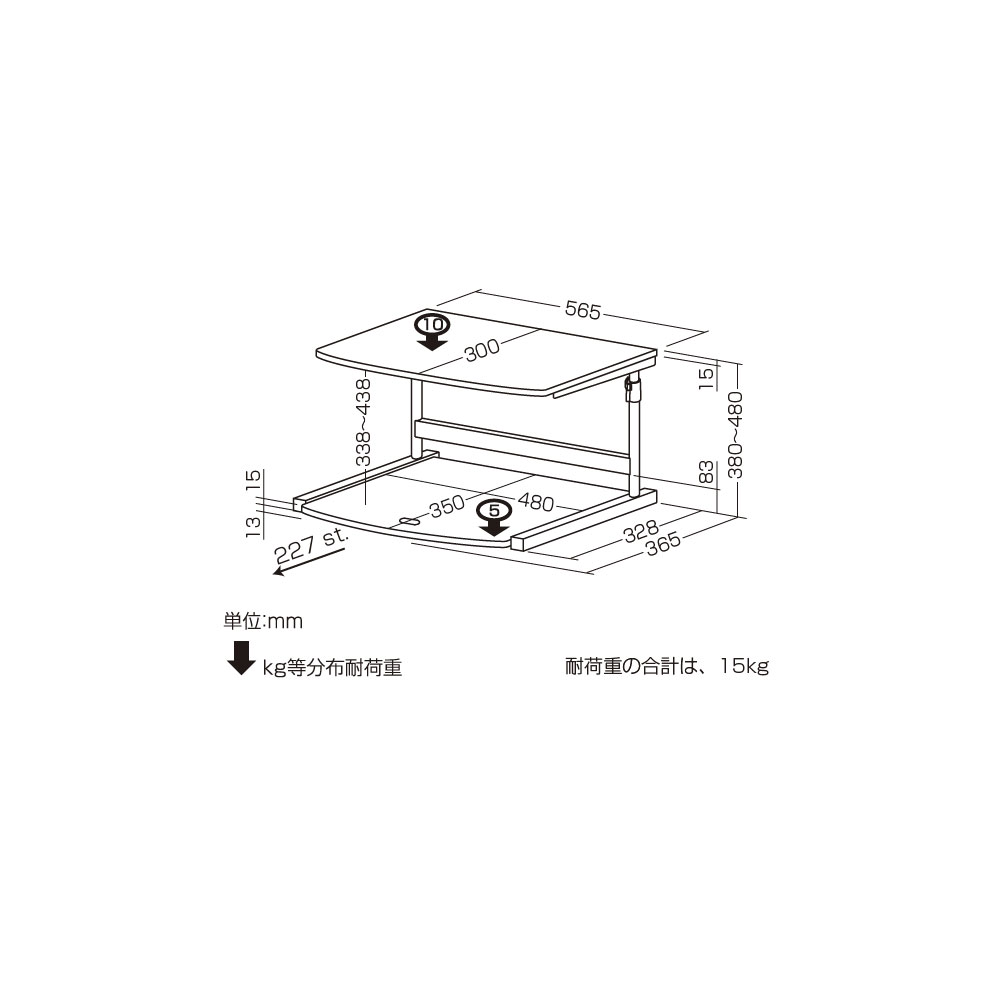 | 材質 | 支柱フレーム(上)/スチールクロームメッキ 支柱フレーム(下)、間口パイプ/スチール粉体焼付塗装 スライドテーブル、棚板/MDF PVC貼り 中間リング/ABS樹脂 アジャスター/ナイロン |