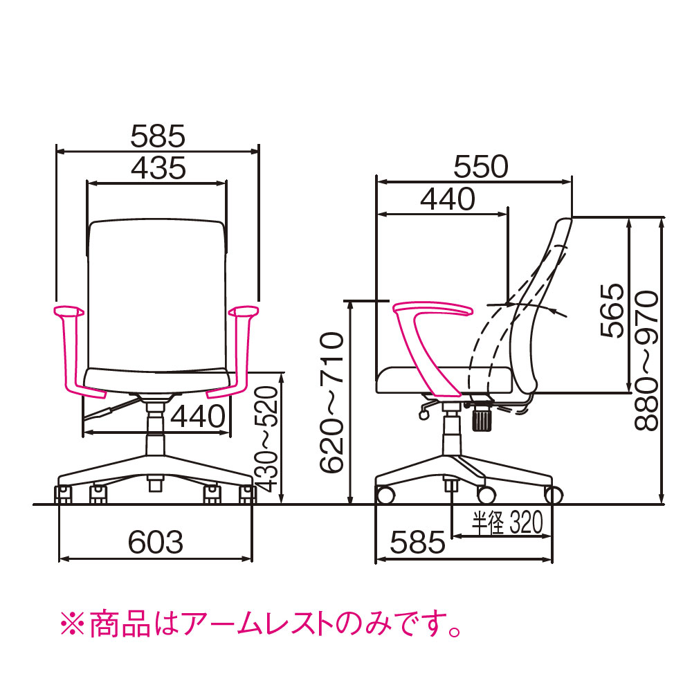 落ち着いたカラーのオールファブリック張りのチェアRZC-501の固定肘