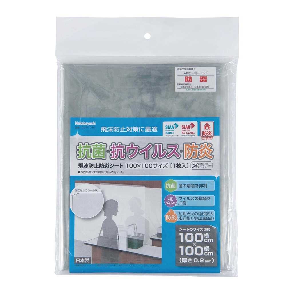 「飛沫防止防炎シート」はSIAAマーク認証を取得した菌やウィルスの増殖を抑制する抗菌・抗ウイルスタイプです。
