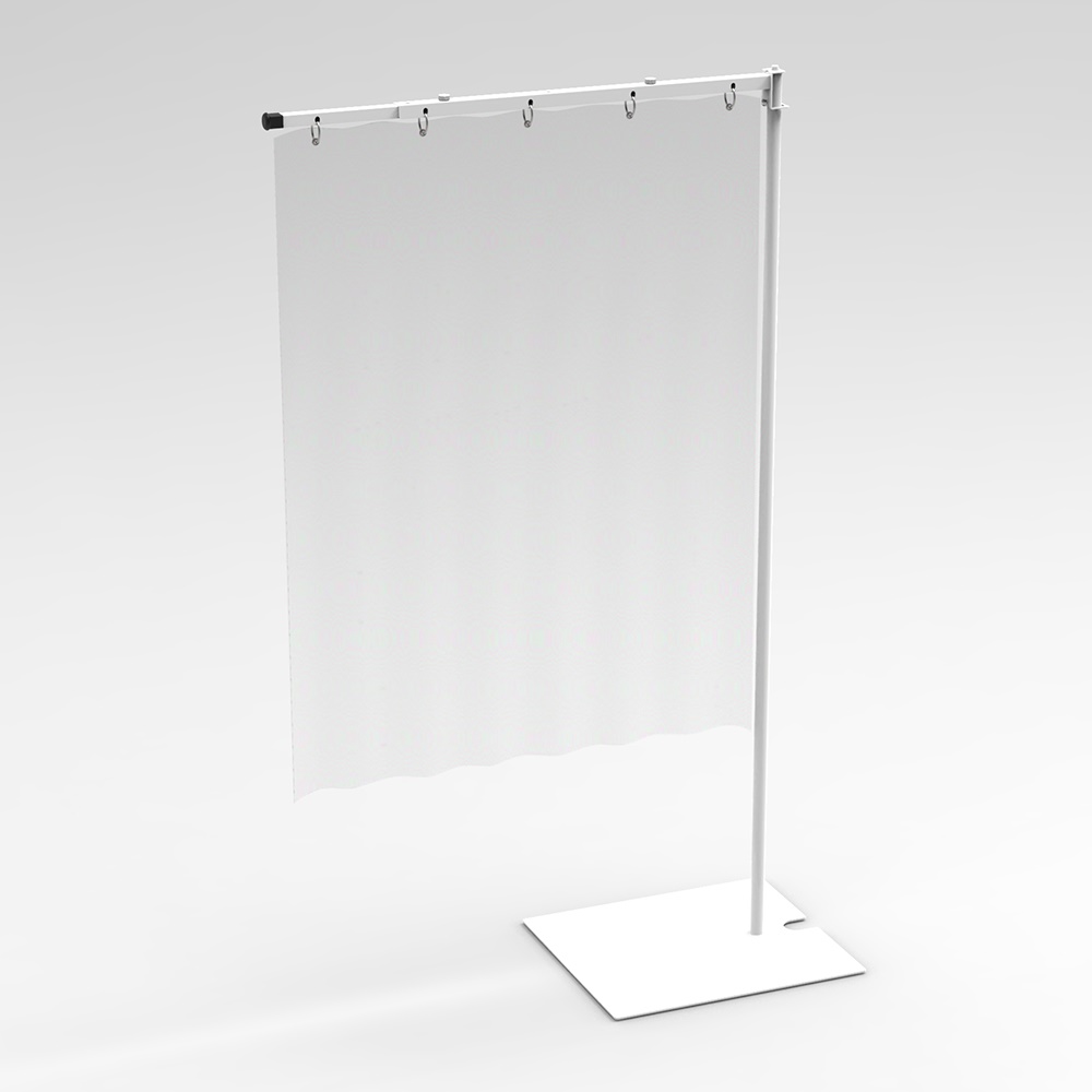 製品ラインアップは、シンプルなシート状の100×100サイズ、吊り下げ穴付きのカーテンタイプ、レールとフックが付いた吊り下げタイプの3タイプよりお選びいただけます。