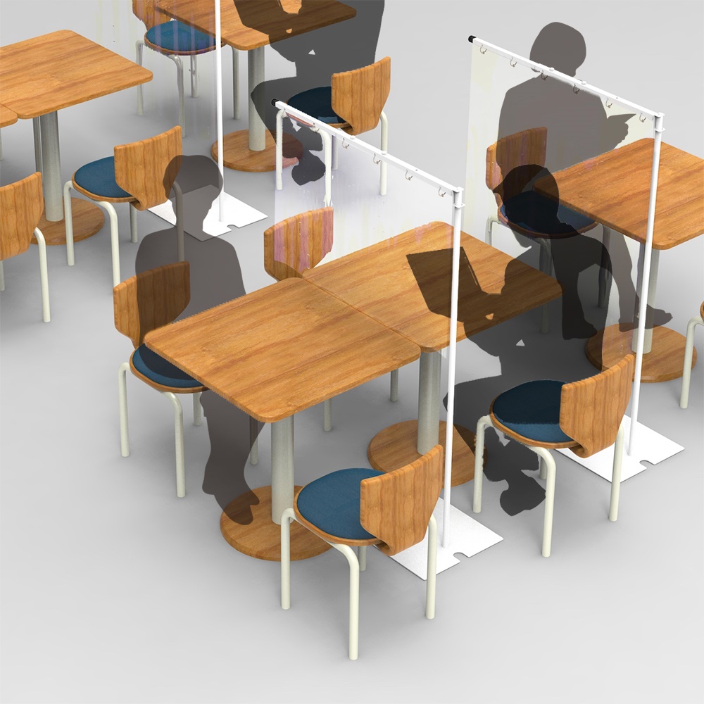 シート(別売り)を取り換えることで衛生的に使え、防炎にも役立ちますので、病院や診療所などの医療機関、レストランやカフェなどの飲食店、集会の演台前や受付など様々なシーンに活用いただけます。