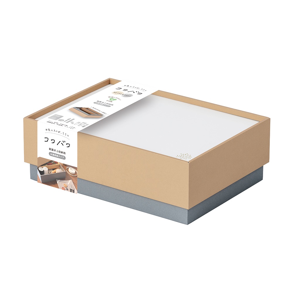 「ココバコ」は、箱を上下に重ねたり組み合わせたりして収納を楽しめる、環境にやさしい紙製の卓上収納用品です。