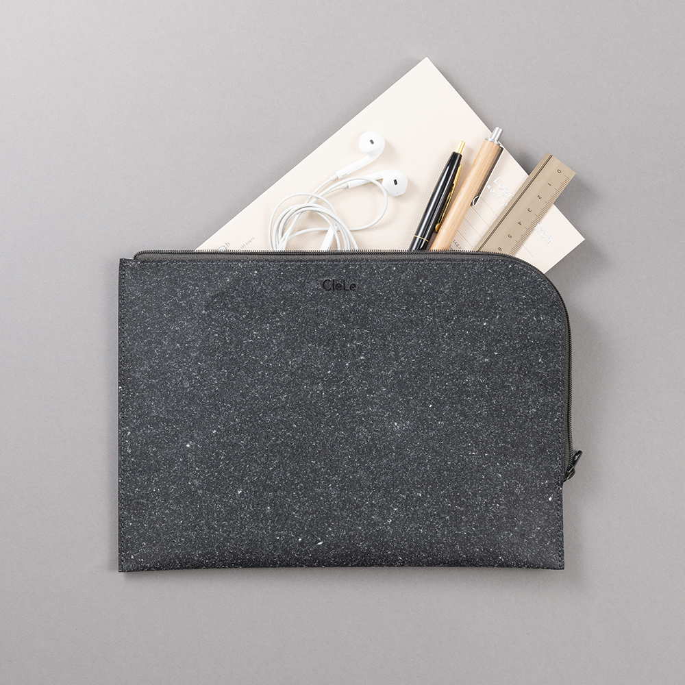 「CleLe(クルレ)」は、革製品を製造する際に出た革の余りや破片などをアップサイクルした皮革繊維再生複合材 でつくられた環境にやさしい文具シリーズです。