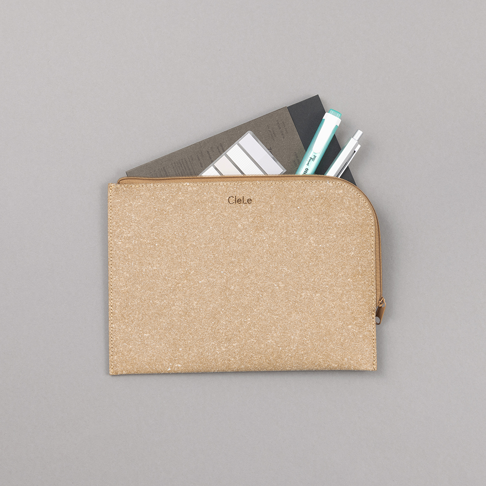 「CleLe(クルレ)」は、革製品を製造する際に出た革の余りや破片などをアップサイクルした皮革繊維再生複合材 でつくられた環境にやさしい文具シリーズです。