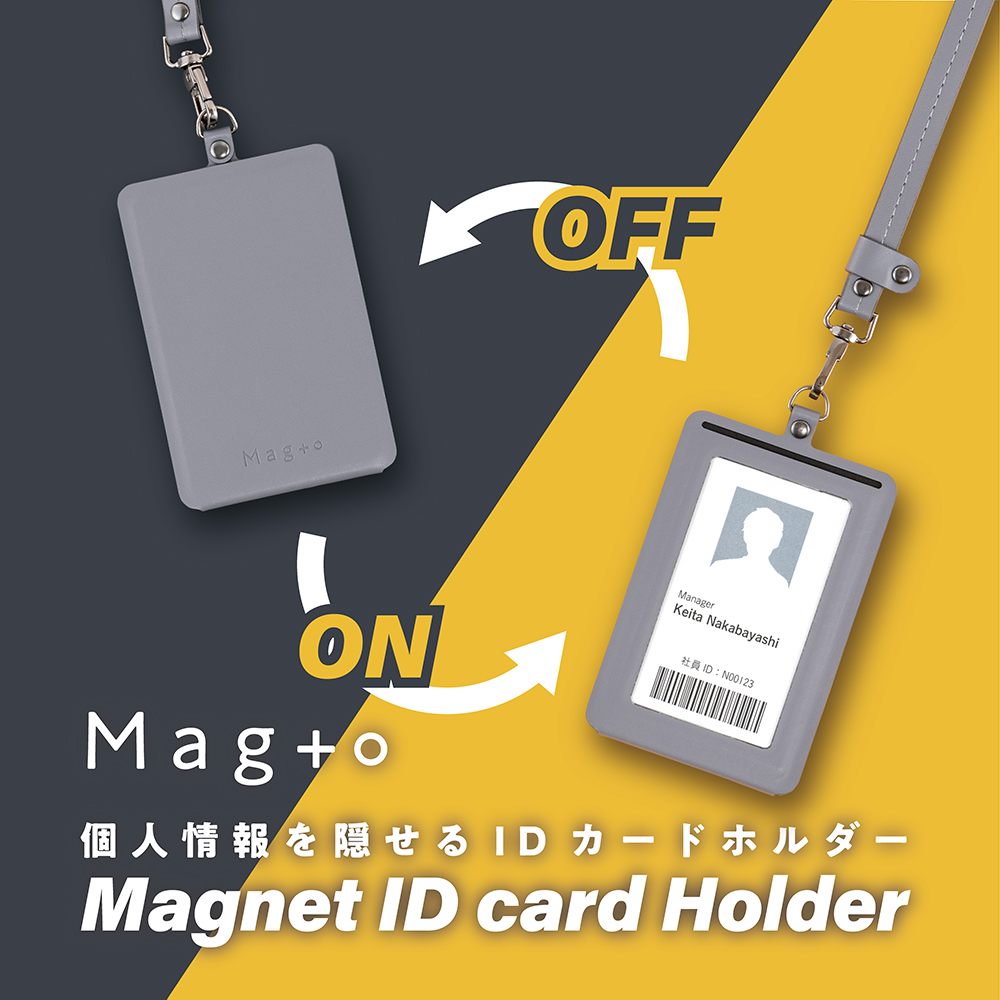 「マグネットIDカードホルダー」は、個人情報の「見せる/隠す」をワンタッチで切り替えられるIDカードホルダーです。
