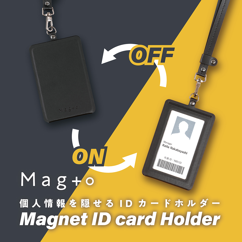 「マグネットIDカードホルダー」は、個人情報の「見せる/隠す」をワンタッチで切り替えられるIDカードホルダーです。