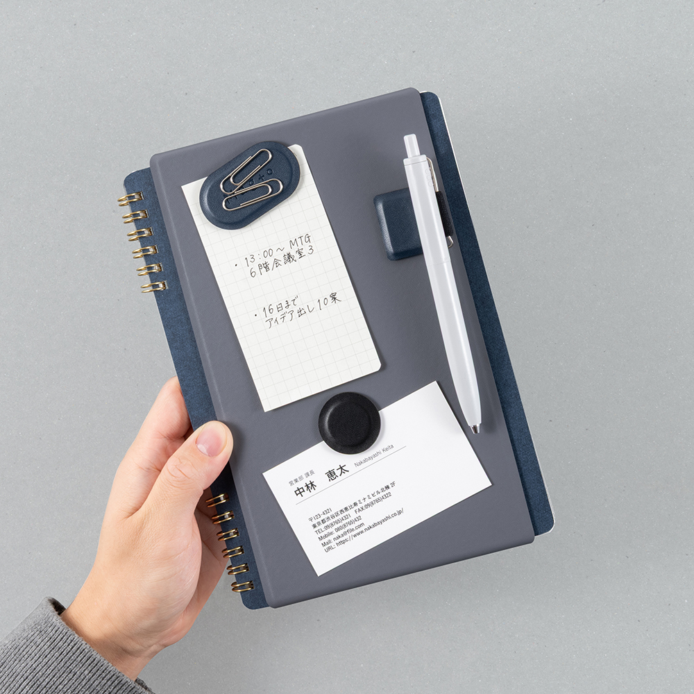 - 同シリーズのアイテムを組み合わせて使えば、必要な小物をノートの表紙にまとめておくことが可能