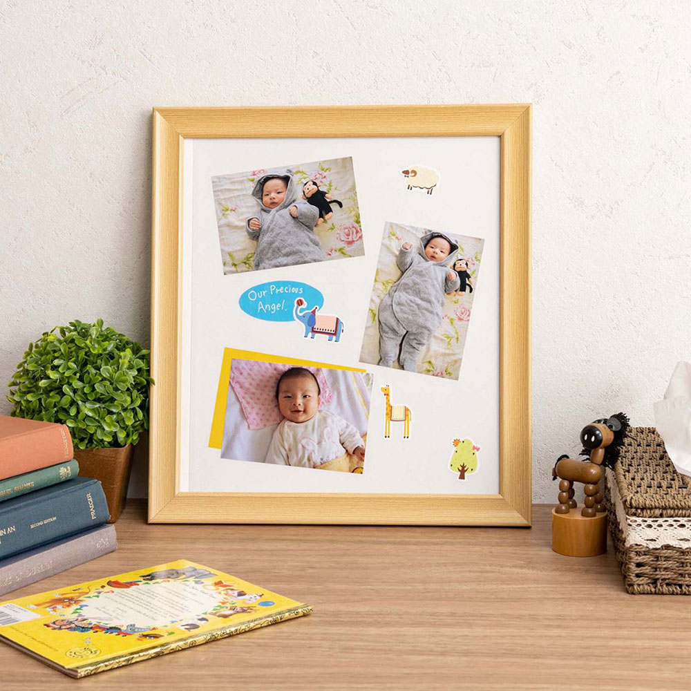 - フエルアルバムのフリー台紙1枚とフレームがセットになっていて、手軽に写真のレイアウトを楽しめる
