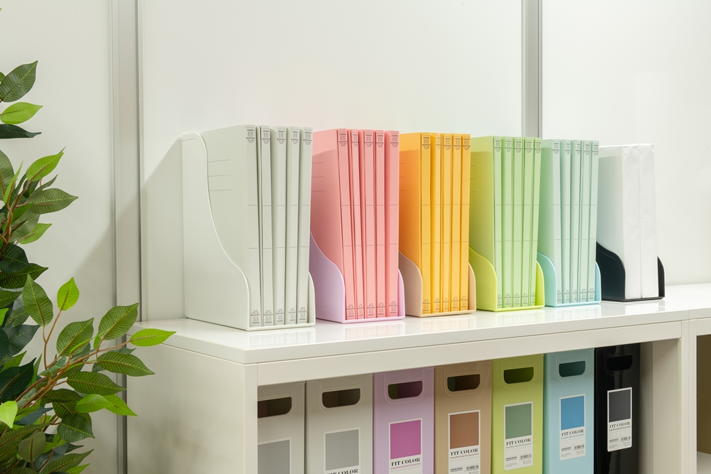 個性を抑えた落ち着いたカラーの展開で、さりげなく生活空間にフィットするカラー収納アイテムです。汎用性の高い収納のベーシックアイテムであるA4ボックスとA4スタンドには6色のフィットカラーを用意しました。リビング、子供部屋、書斎、ベビールーム、パーソナルルーム、オフィス、ワークルームなどあなたのセンスで有効活用。