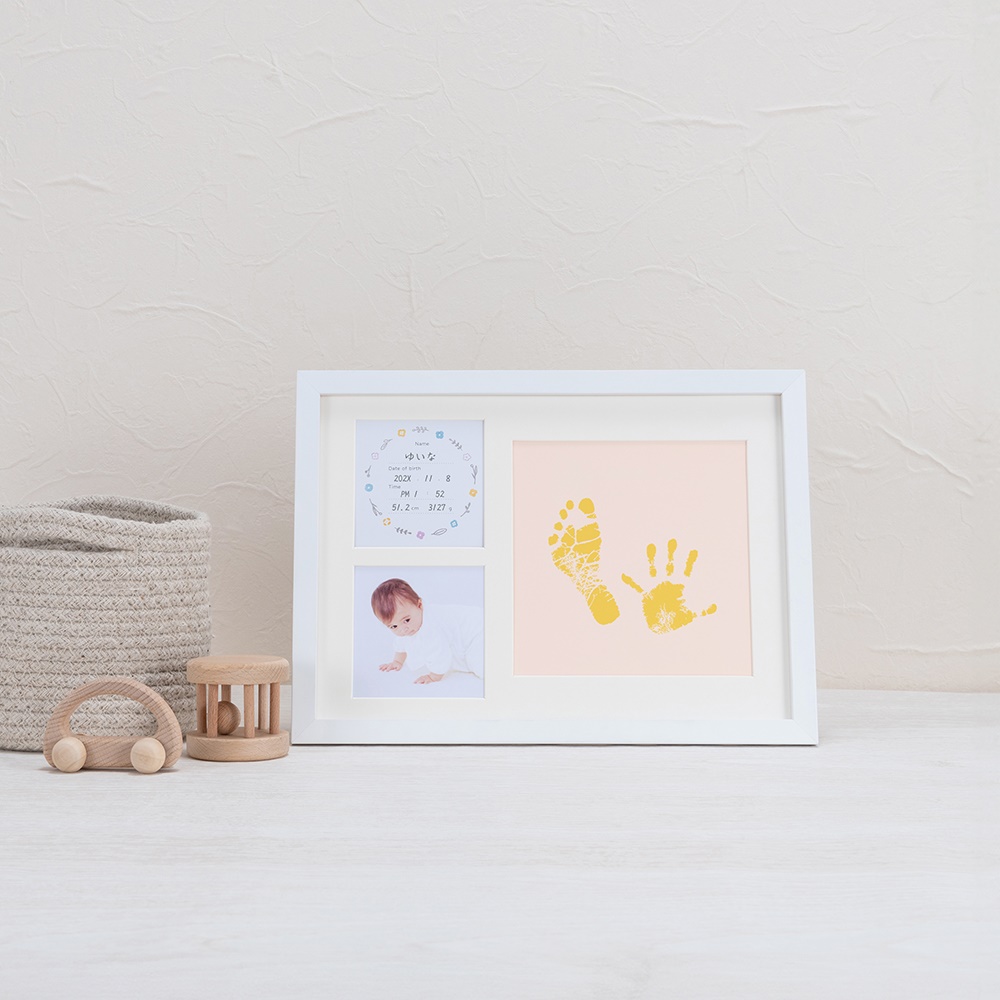 - 大切なお子様の写真と手形足形を一緒に残せるフォトフレーム