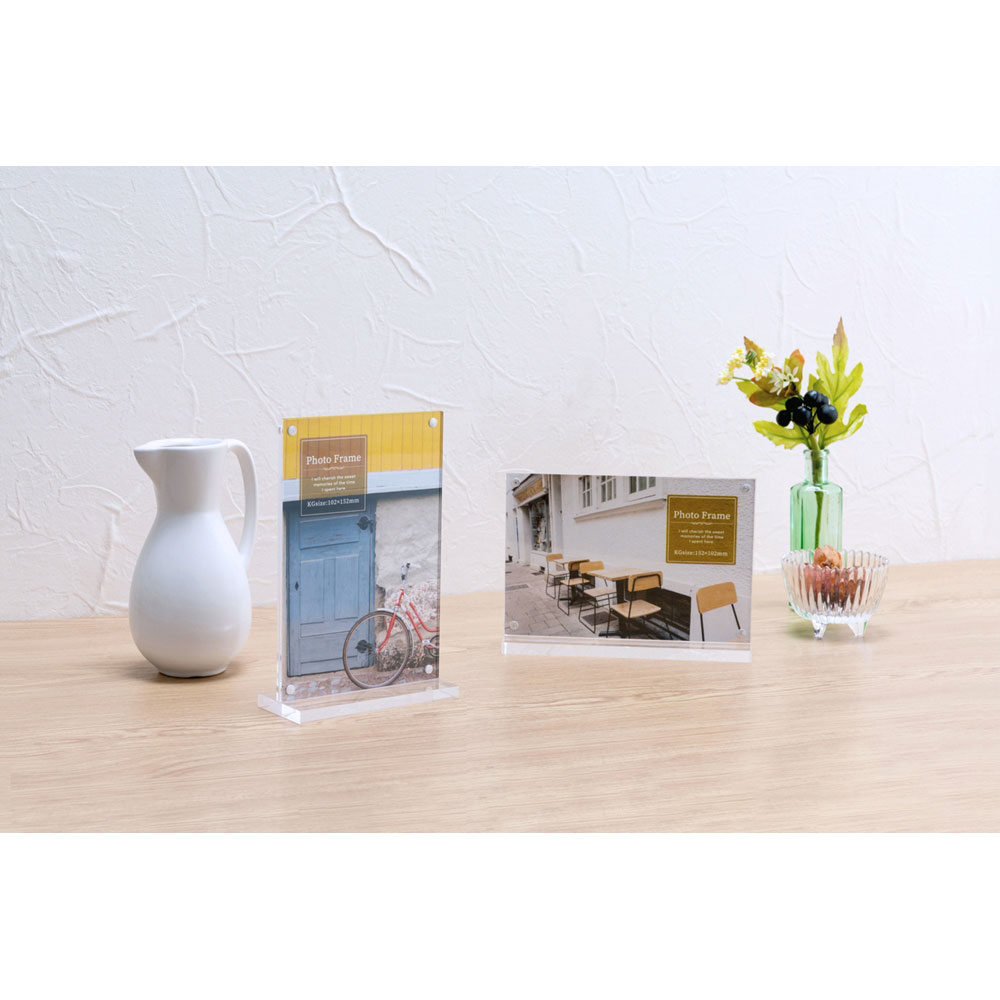 透明感のあるアクリル板が写真をぐっと引き立てる、マグネット式スタンドフォトフレームです。