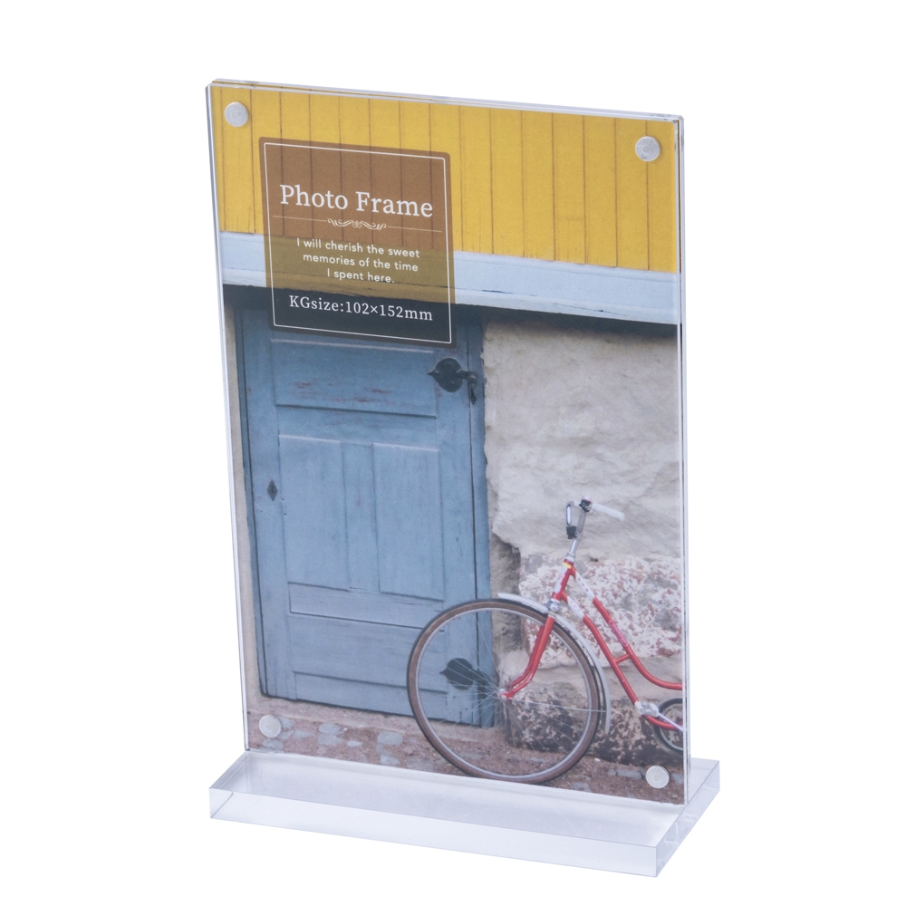 透明感のあるアクリル板が写真をぐっと引き立てる、マグネット式スタンドフォトフレームです。
