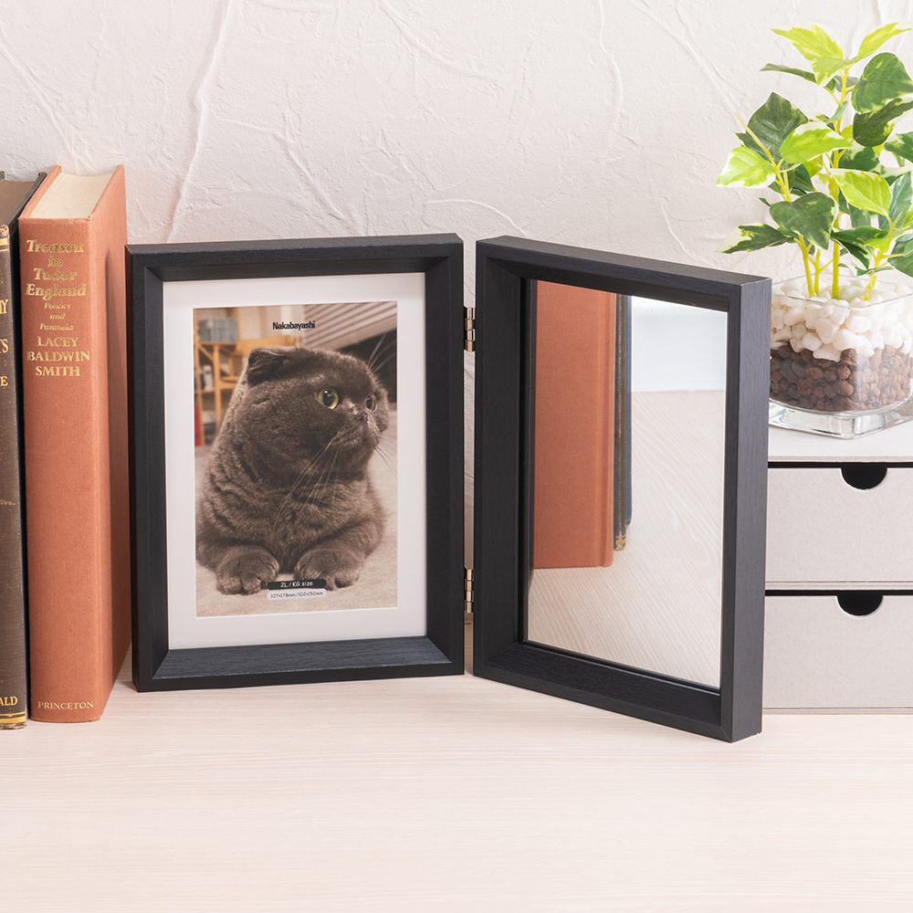 鏡&フォトフレーム 2面 2L判/KG判 ブラック