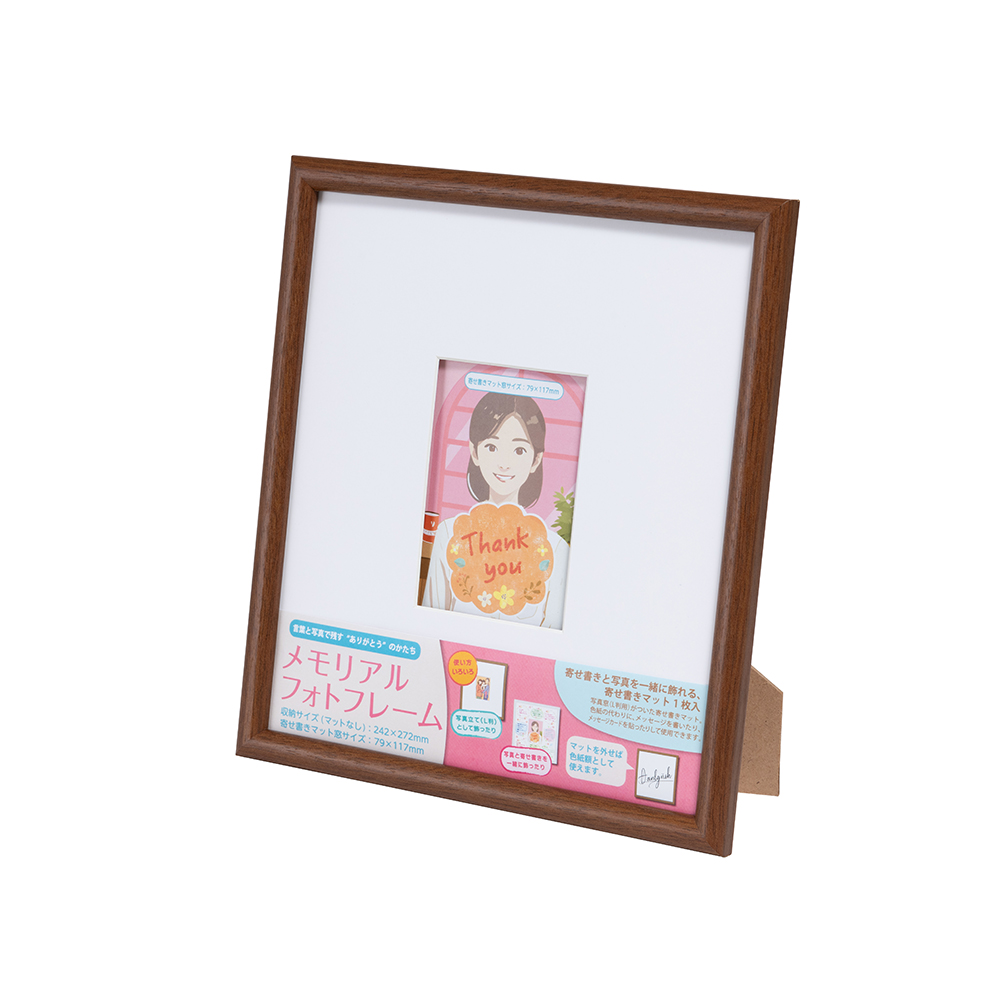 写真窓(L判用)がついた寄せ書きマット付き。