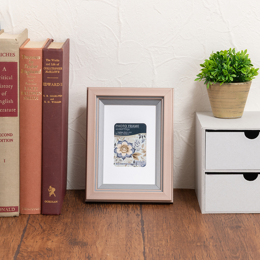 「モダンエッジフォトフレーム」は、白のマットが1枚付いているフォトフレームです。マット使用時・マット不使用時で2種類のサイズに対応しています。マットを使用すると視覚的にアクセントが加わり作品を引き立てます。
