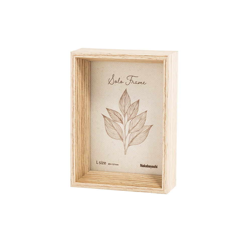 「ソロフレーム」は自立することができ、重ねて置くこともできる木製フォトフレームです。一般的なフォトフレームと異なりスタンドがなく、奥行が40?あるため振動に強く、安定感があります。