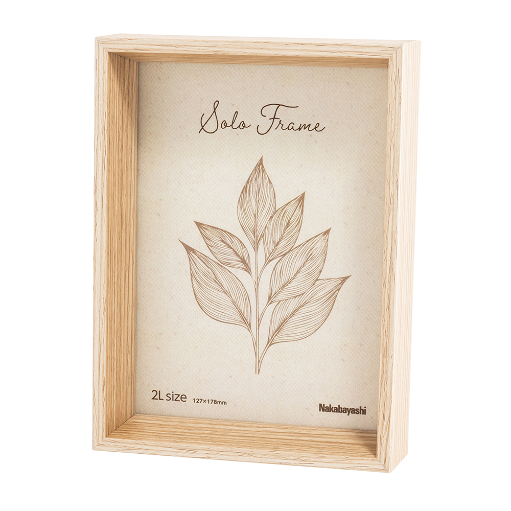 「ソロフレーム」は自立することができ、重ねて置くこともできる木製フォトフレームです。一般的なフォトフレームと異なりスタンドがなく、奥行が40?あるため振動に強く、安定感があります。
