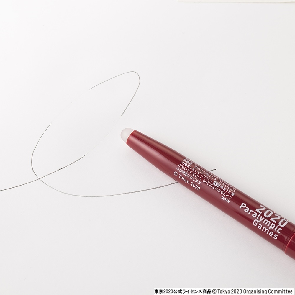 | 注意 | ※専用ラバーでこすると色が消えます。 ※証書類・宛名など消えてはいけないものには使用しないでください。 ※直射日光の当たる場所や、高温になる場所に置かないでください。60℃以上になるとインキが無色になります。 ※-10℃前後になると消去した筆跡が戻る場合があります。 ※紙以外への筆記には使用しないでください。 |